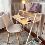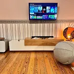 Apartment Am Schloss-Park Wiesbaden Biebrich Am Rhein comprises a sitting area featuring a sofa and a work desk, and modern comforts like a TV set. Along with city views, guests will also appreciate soundproof windows, which enhance the overall experience. A bathroom is equipped with a separate toilet and a shower, as well as hair dryers and bathrobes.